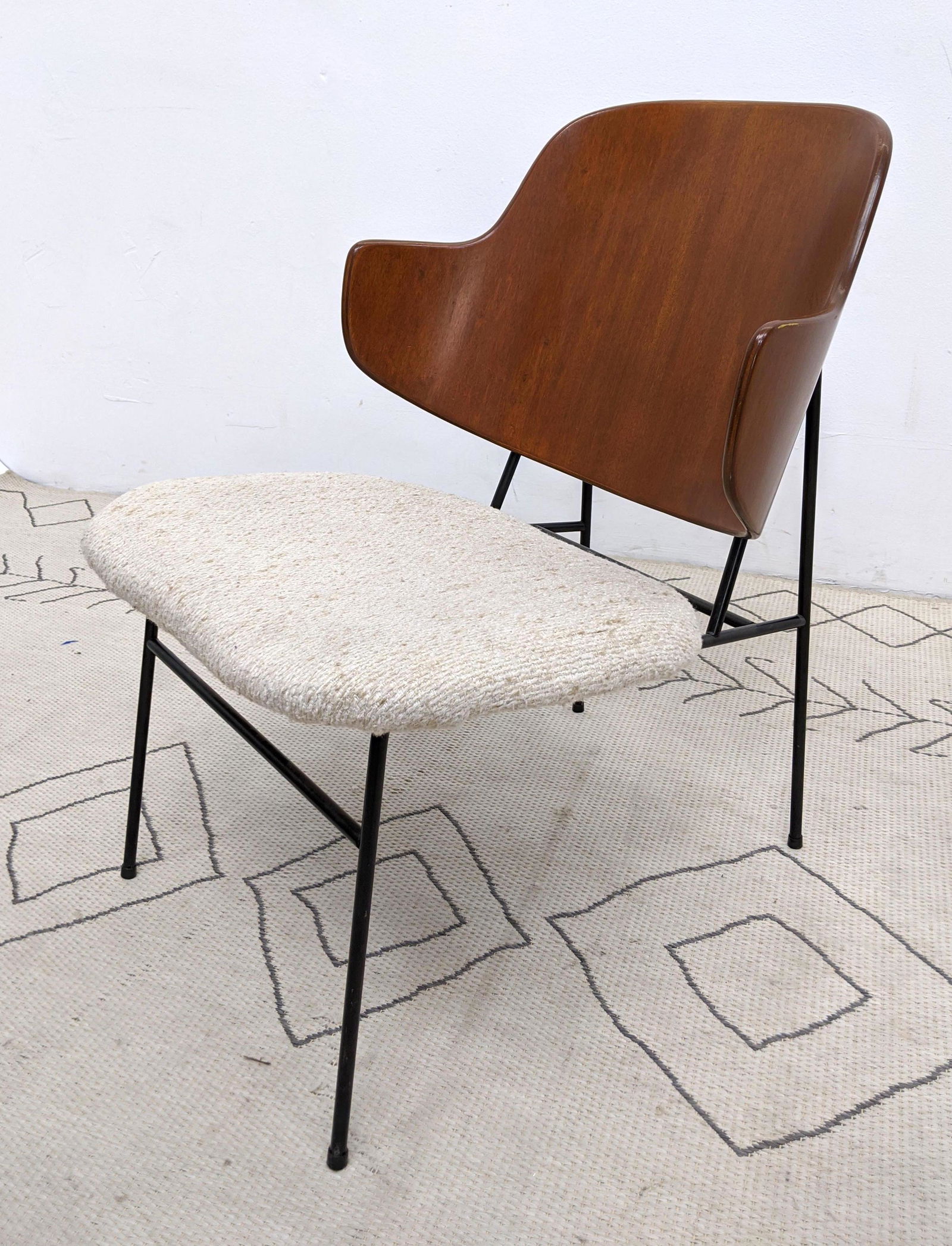 Pair of ib kofod larsen | penguin chairs lounge danish modern. Pair of ib kofod larsen | penguin chairs lounge danish modern. The wood back has been refinished and does have the correct made in denmark stamp. A few screws have been replaced.